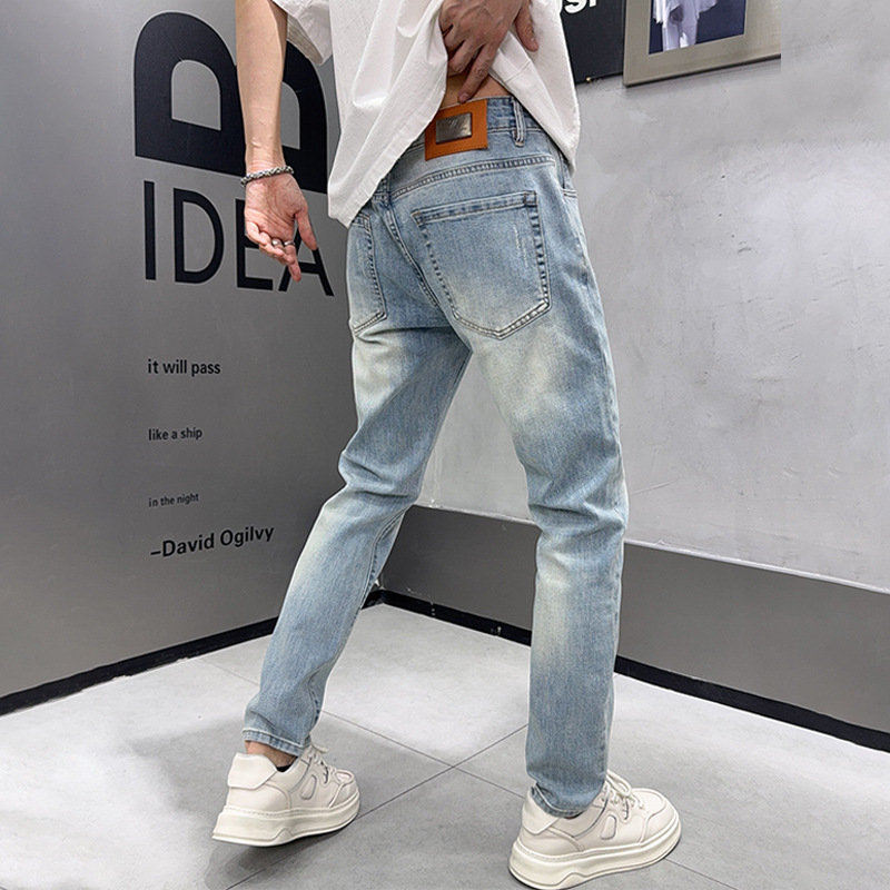 新しいライトブルーの高級ジーンズメンズ2025春夏ゆったり万能トレンドブランドカジュアルパンツ