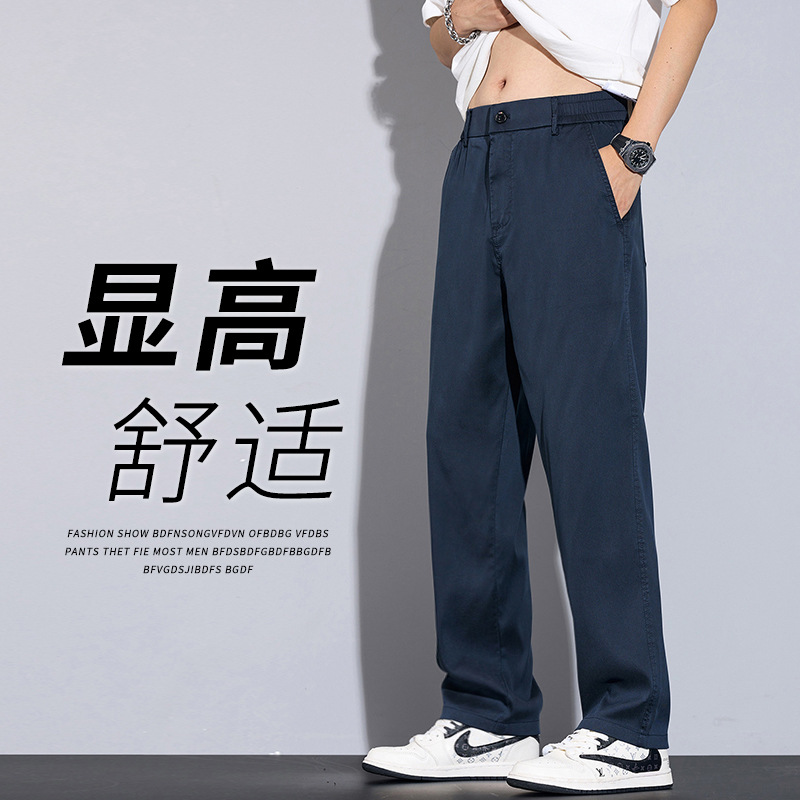 MP/夏の薄いタイプのワイドレギンスのカジュアルなズボンの男性のまっすぐな筒のゆったりしたファッションのブランドのライゼルの天糸の夏は長いズボンを詰めます。