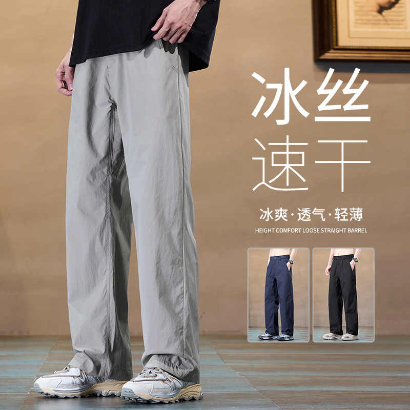 夏の新しい速乾性アイスシルク屋外生地カジュアルパンツ黒メンズカジュアルパンツ