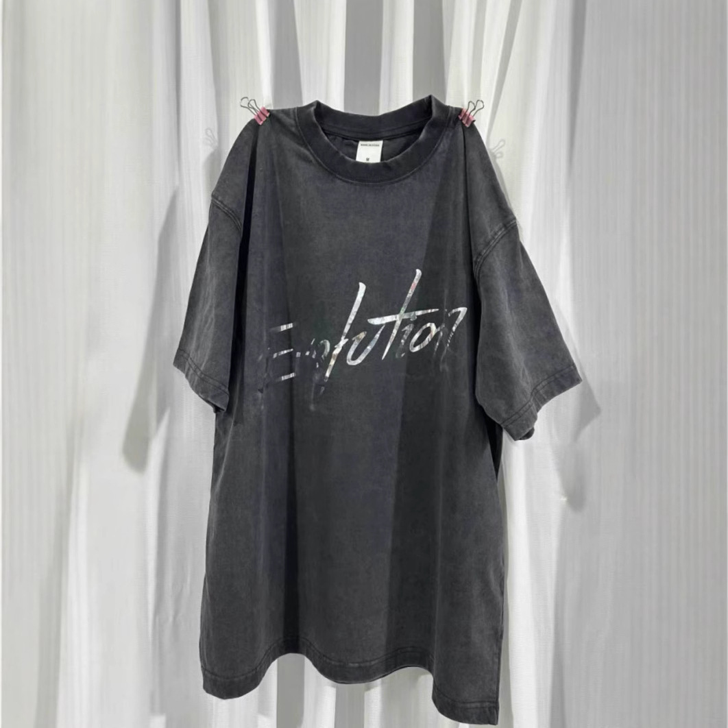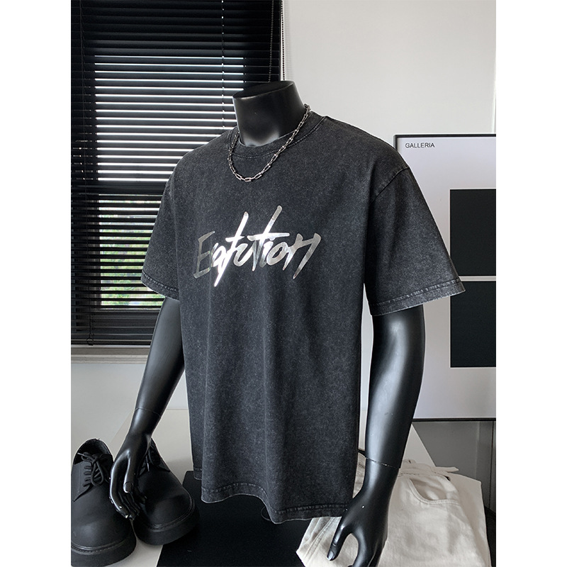 Fengge コンサートと同じスタイルのレーザー反射文字のダメージ加工半袖 T シャツ、男性と女性用、アメリカン レトロで多用途