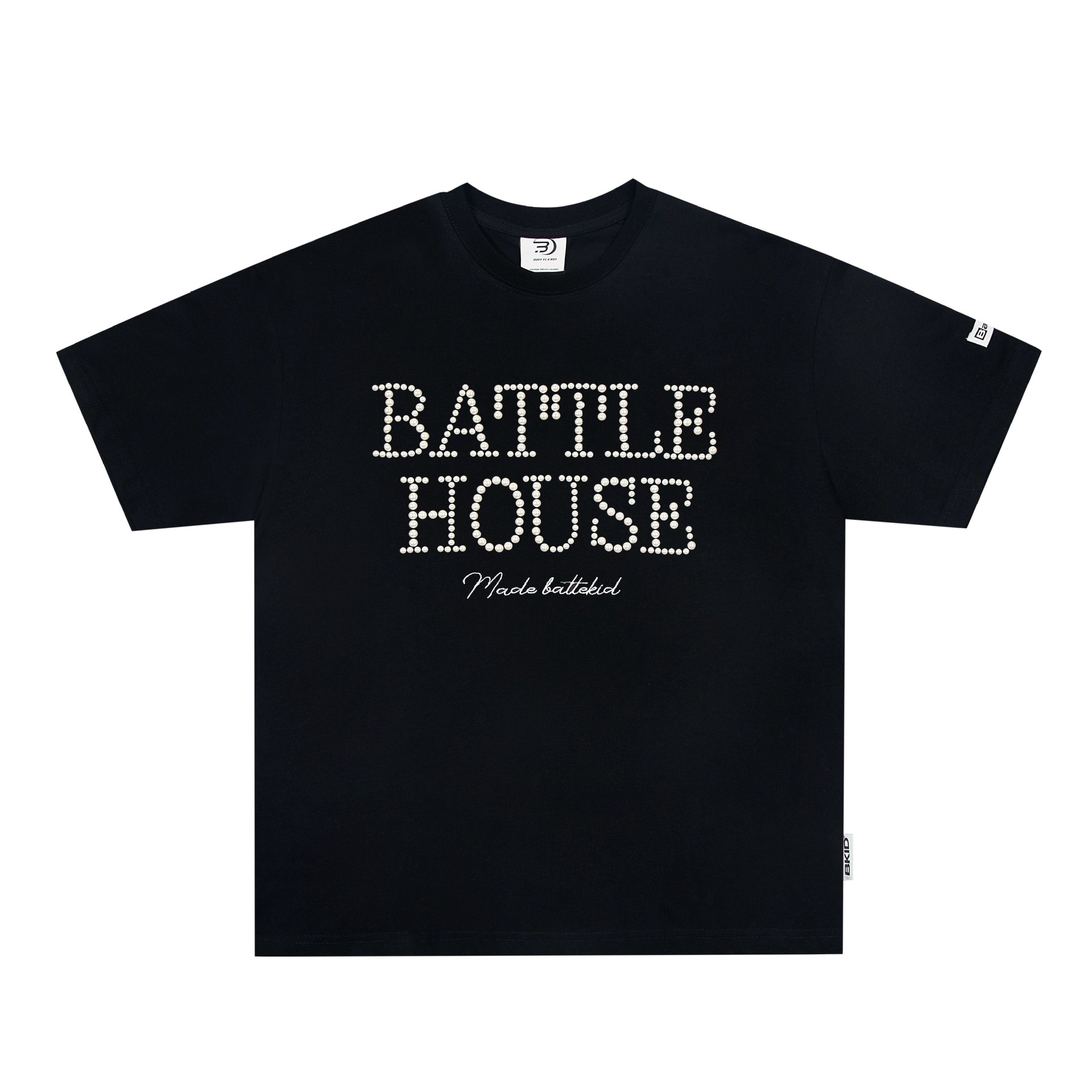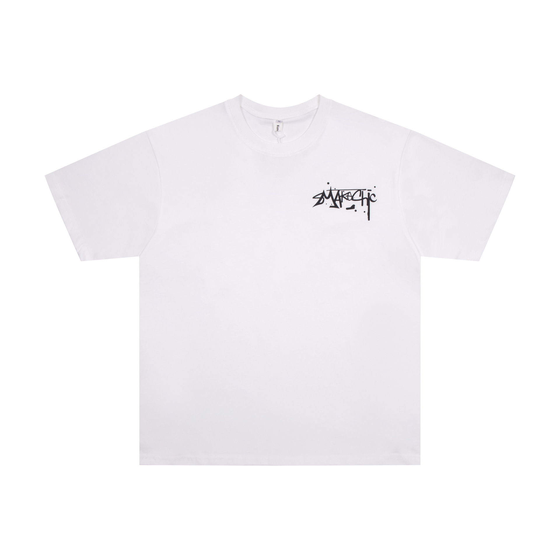 ナショナルトレンドハイストリートトレンドポーカーレタープリントカジュアルルーズ万能Tシャツ白黒シェニールスパンデックス