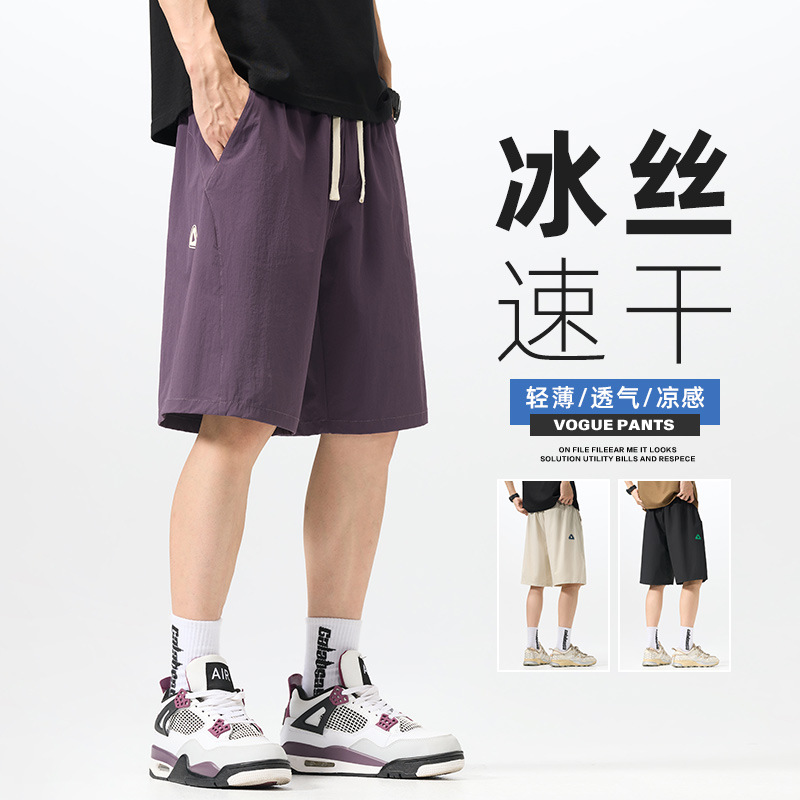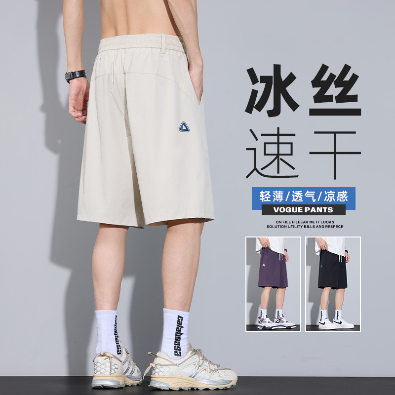 2025 メンズ夏薄手カジュアルスポーツ速乾ティーンエイジャーアメリカントレンド香港スタイルルーズ日本ワイドレッグ