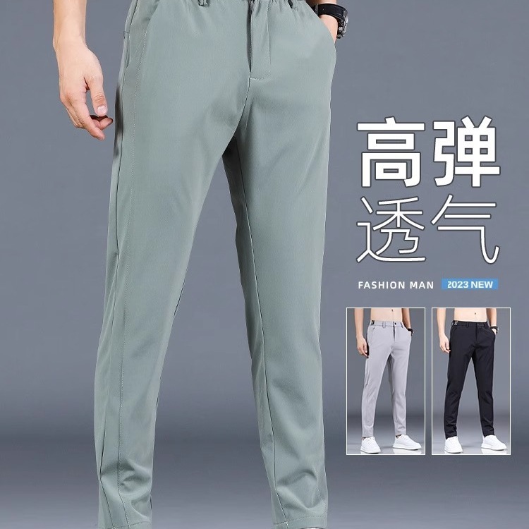 2025年新作夏速乾カジュアルパンツメンズトレンディブランドアイスシルク薄手ストレートレッグルーズ9点パンツ在庫あり