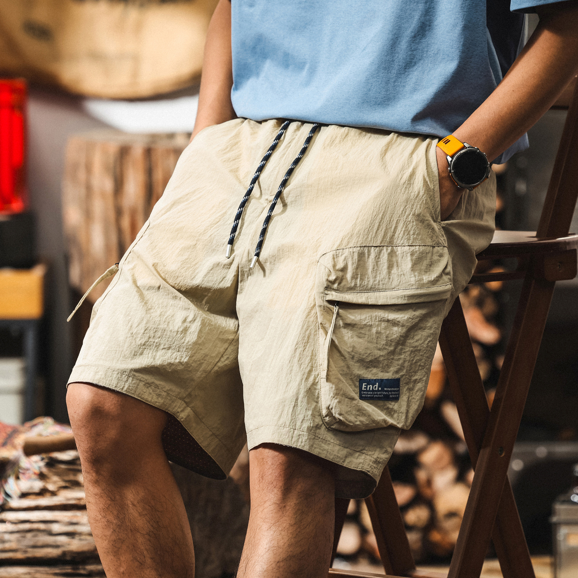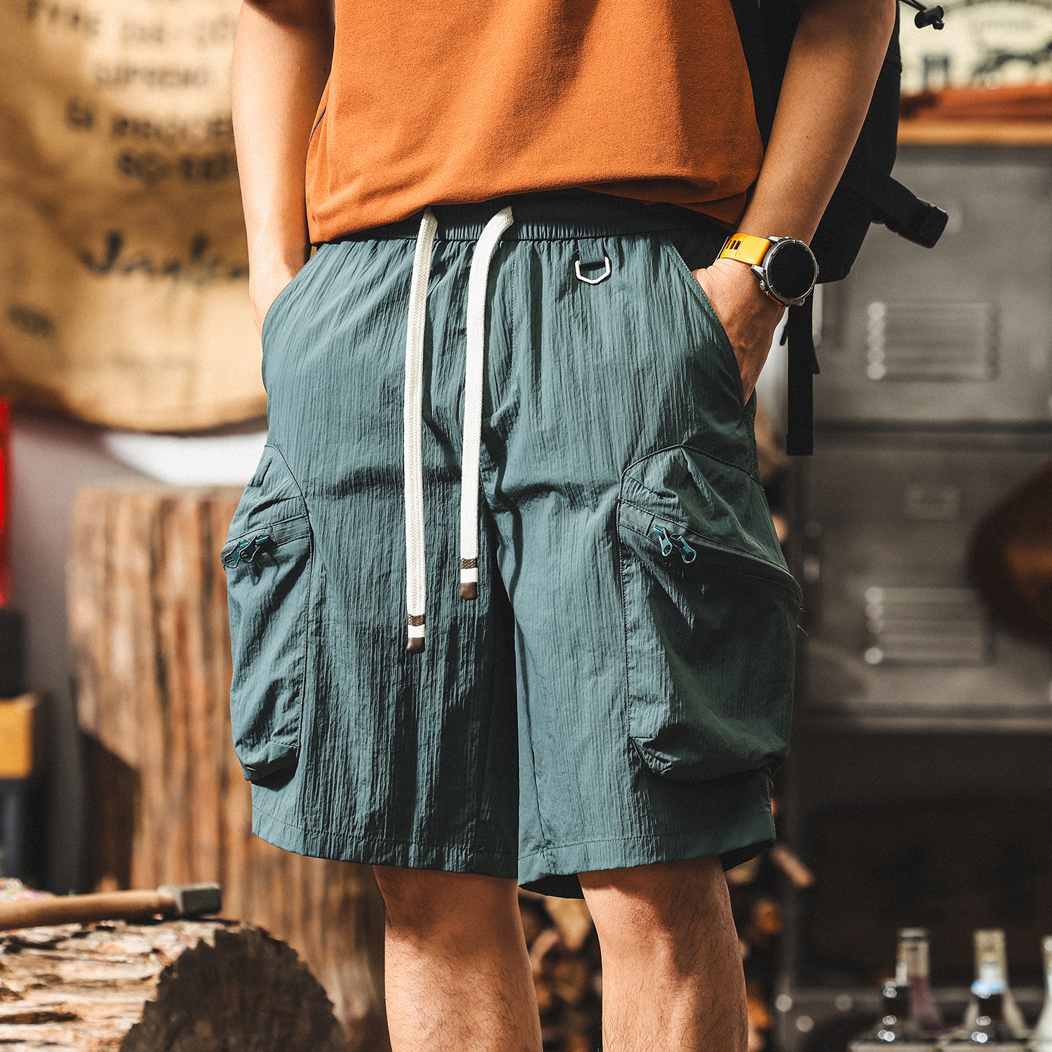 アメリカンレトロアイスシルククール薄型カーゴショーツメンズ夏アウトドア機能カジュアルルーズストレート5点パンツ