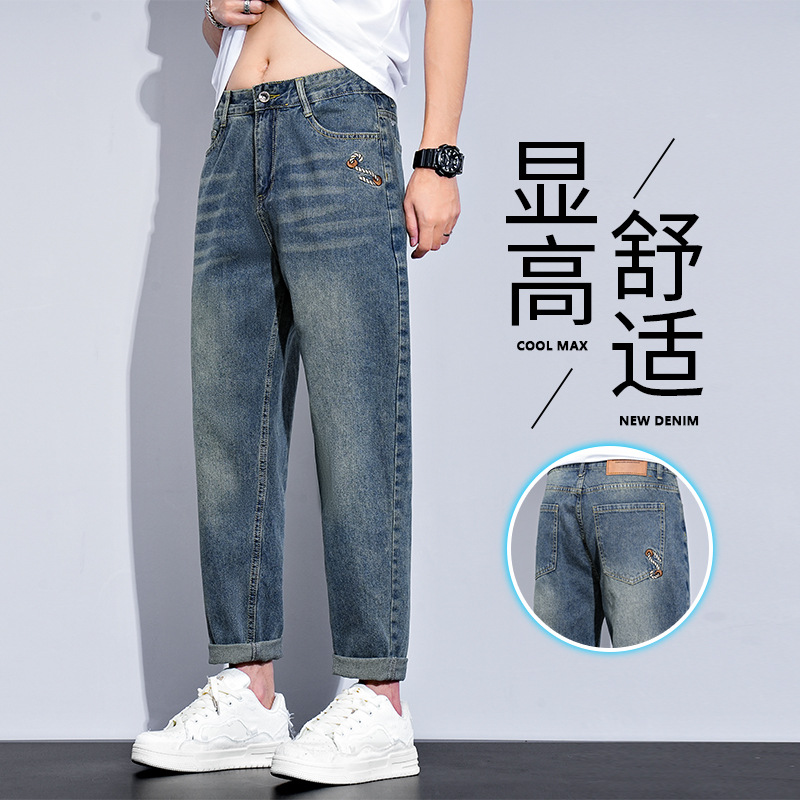 アメリカンレトロハーレムジーンズメンズ2025春夏新作トレンディな多用途ルーズスリムユースパンツ