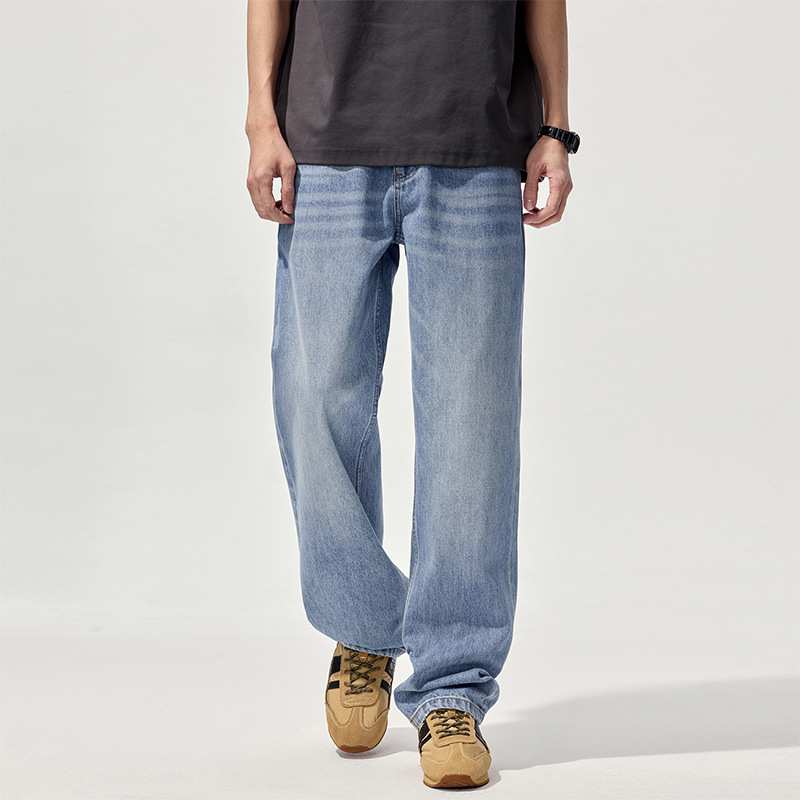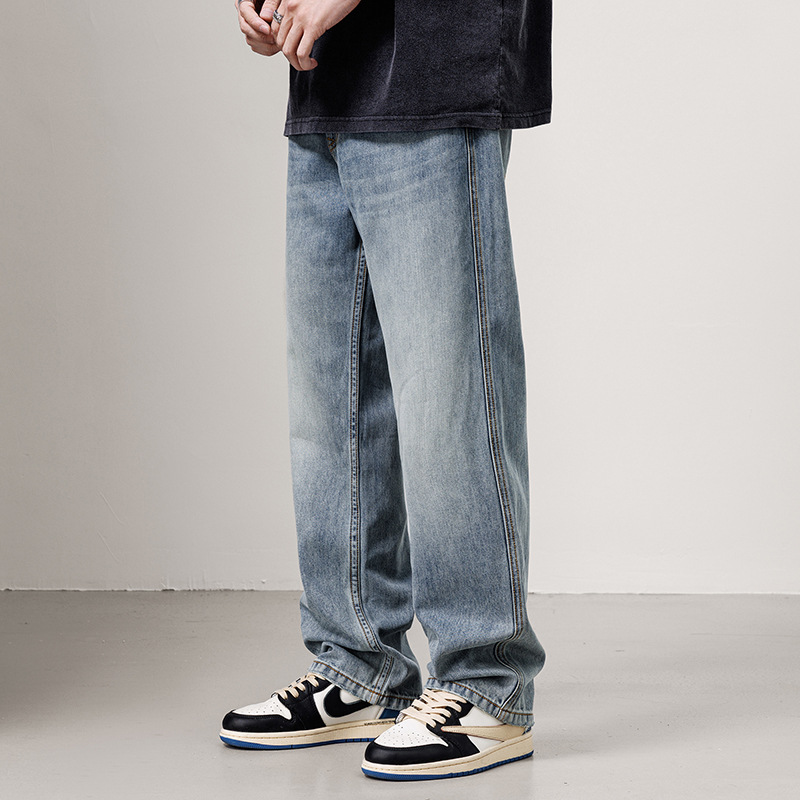 2025 春夏新作ルーズストレートジーンズアメリカンデニム日本トレンドメンズパンツ 8505 ブルー在庫あり