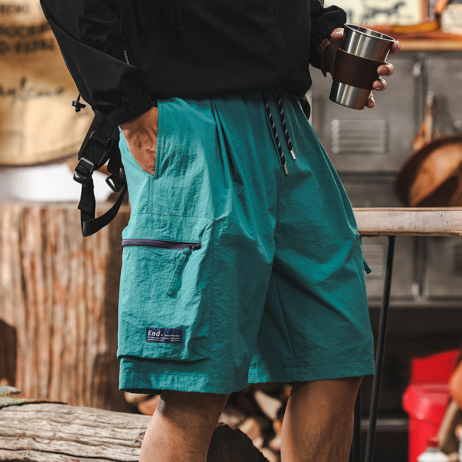クールアイスシルクカーゴショーツメンズ夏薄いアメリカンレトロアウトドア防水速乾ルーズ大きいサイズ5点パンツ