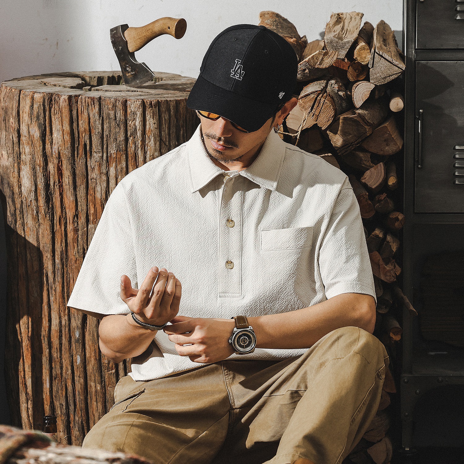 アプリコット半袖メンズ夏クールポロシャツメンズルーズ2025新しいアメリカンレトロ半袖ルーズTシャツ