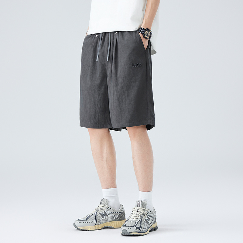 アメリカンレトロアウトドアスポーツ速乾ショーツメンズ夏トレンディなアイスシルク薄いルーズストレートカジュアル5点パンツ