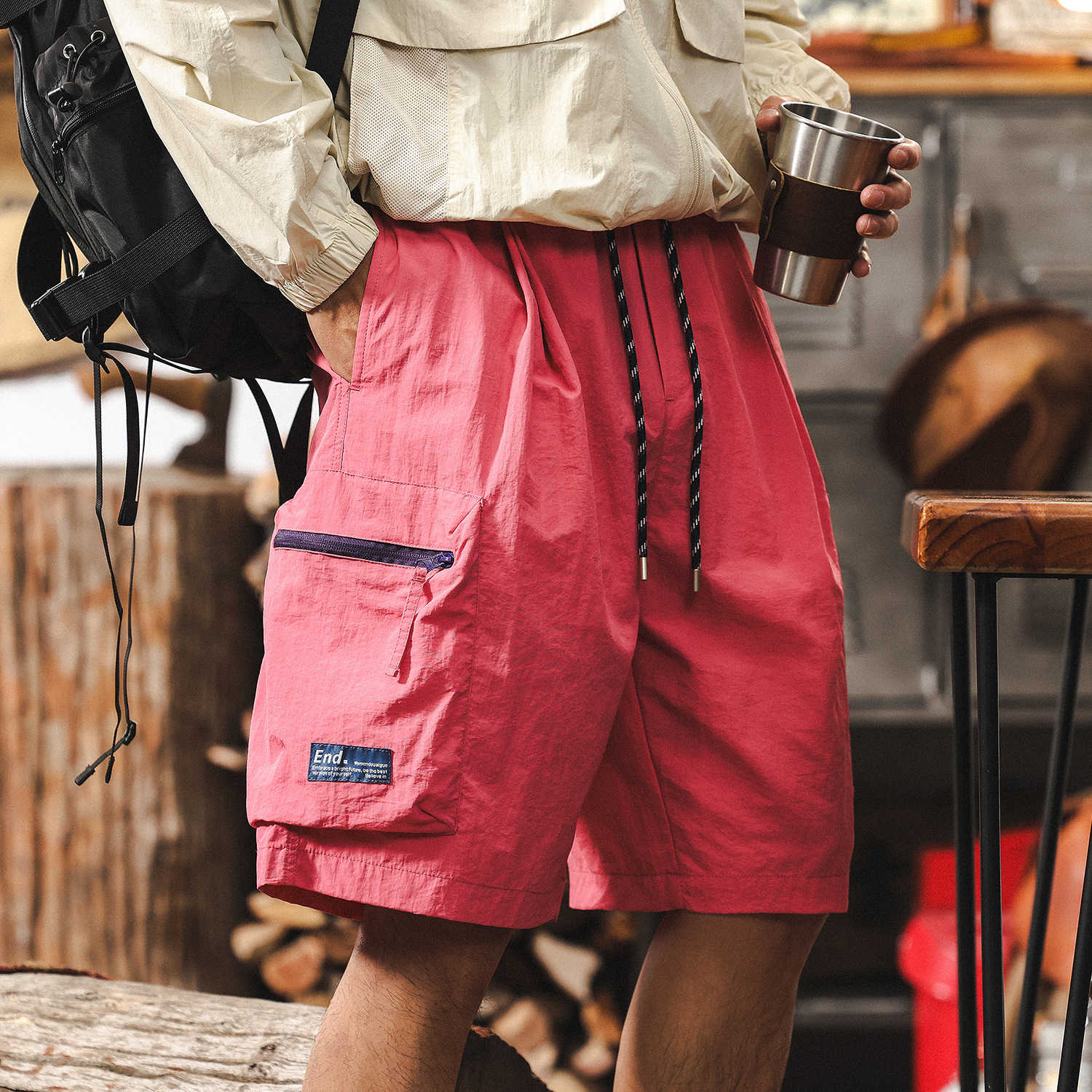 アメリカンアウトドアスムーズアイスシルククールカーゴショーツメンズサマーピンク薄手パンツメンズカジュアル5点パンツメンズ