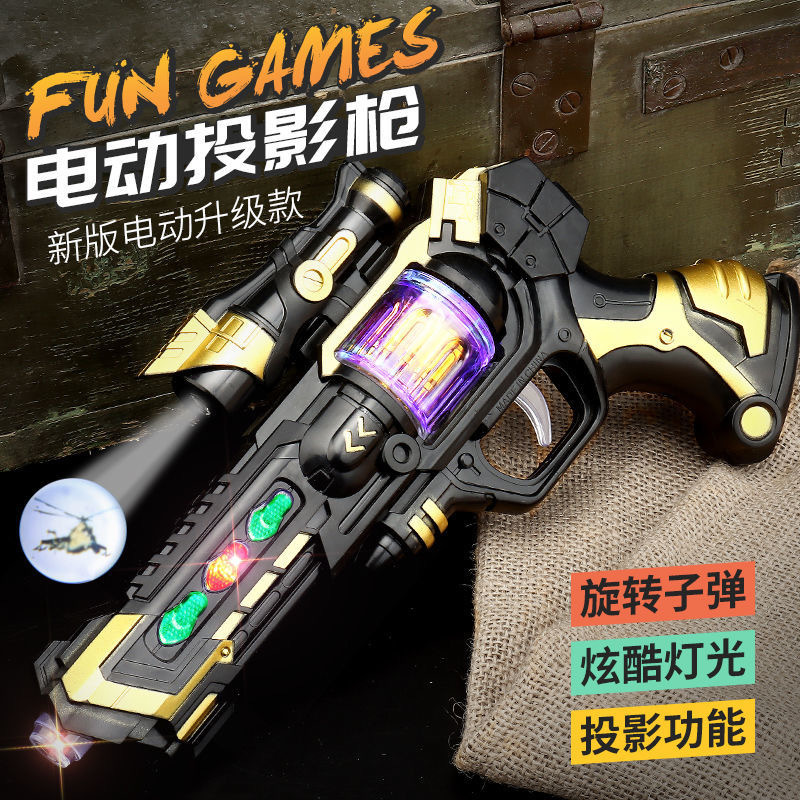 夜市の露店の爆発物の子供の発光の電動のおもちゃの銃の小さい男の子は音楽のオルゴールを投影して卸売りを売ります。