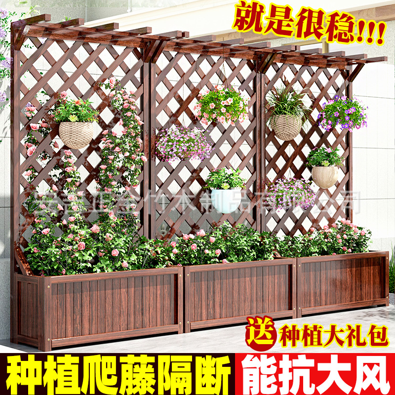 屋外防腐木材フェンス植木鉢木製花棚メッシュフェンス籐棚仕切り花溝ベランダ炭化木花箱