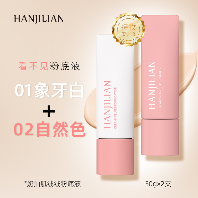 ハン・ジリアン インビジブル リキッド ファンデーション 乾燥肌用、保湿、クリーミー肌、長時間持続、メイク落ちしない、コンシーラー、メイク持続