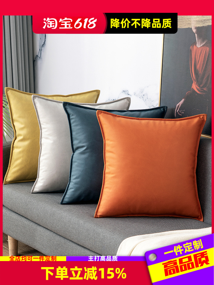 ♡ テクノロジー布枕ソファリビングルームライト高級枕カバーオレンジクッションレザー枕カスタムバック
