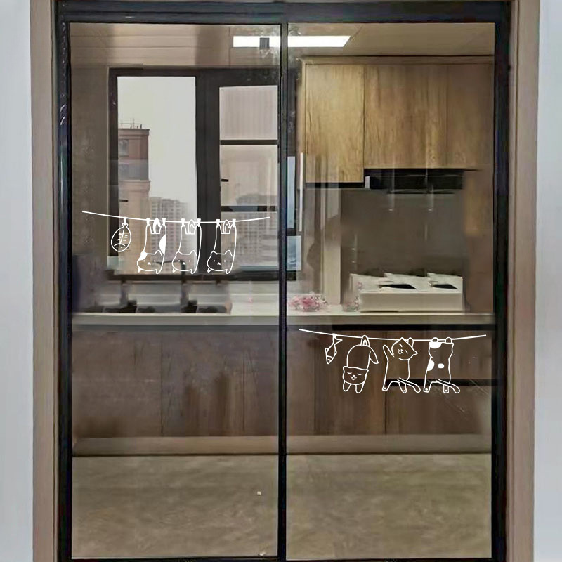 家庭用リビングバルコニーガラスドア衝突防止ウエストライン猫ペットかわいい模様障子装飾窓花シール