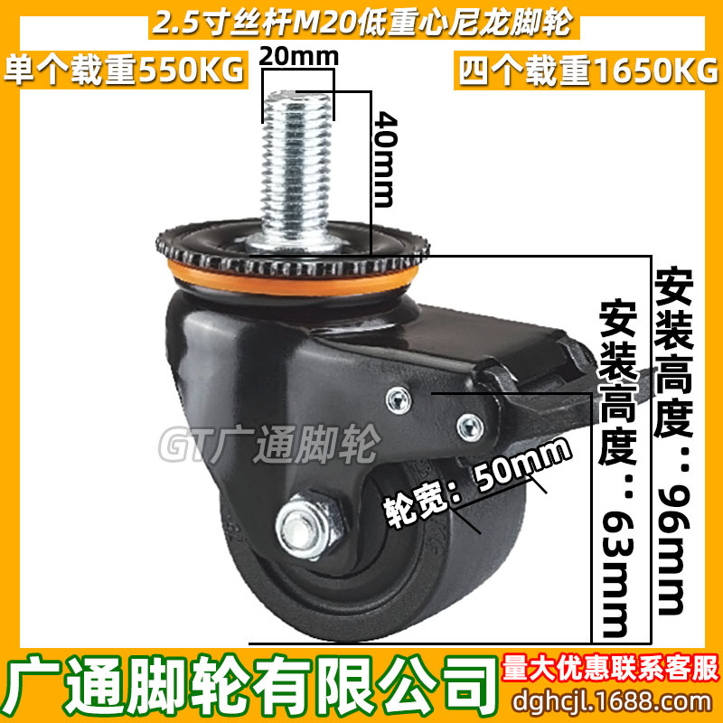 2.5インチ低重心ナイロンタービン器械設備重車輪ねじm 16日本式ビッグマック工業輪