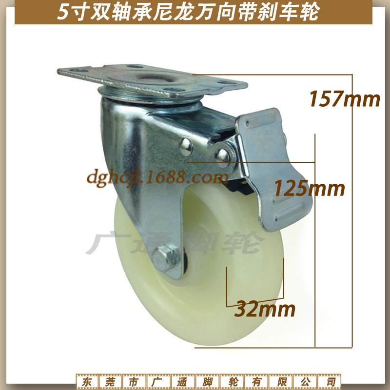 5インチユニバーサルブレーキナイロンキャスターのショッピングカートは、耐摩耗性プーリーのダブルベアリング工業用車輪に転向します。
