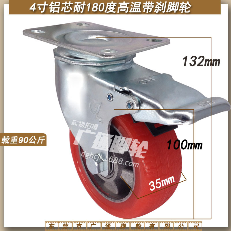 4インチユニバーサルブレーキ耐高温アルミ芯シリコンキャスターオーブン台車ゴムローラー機械静音輪
