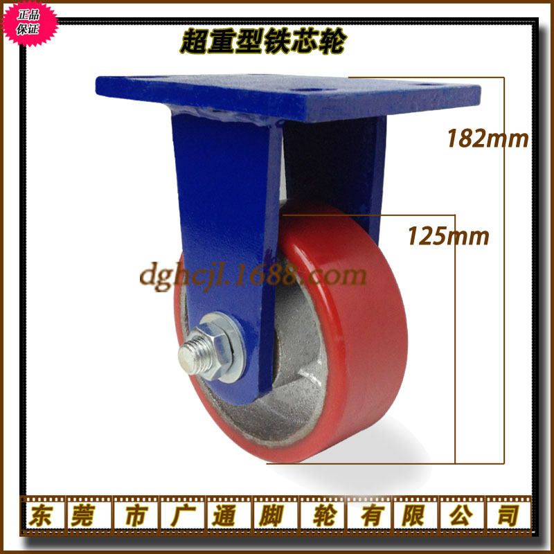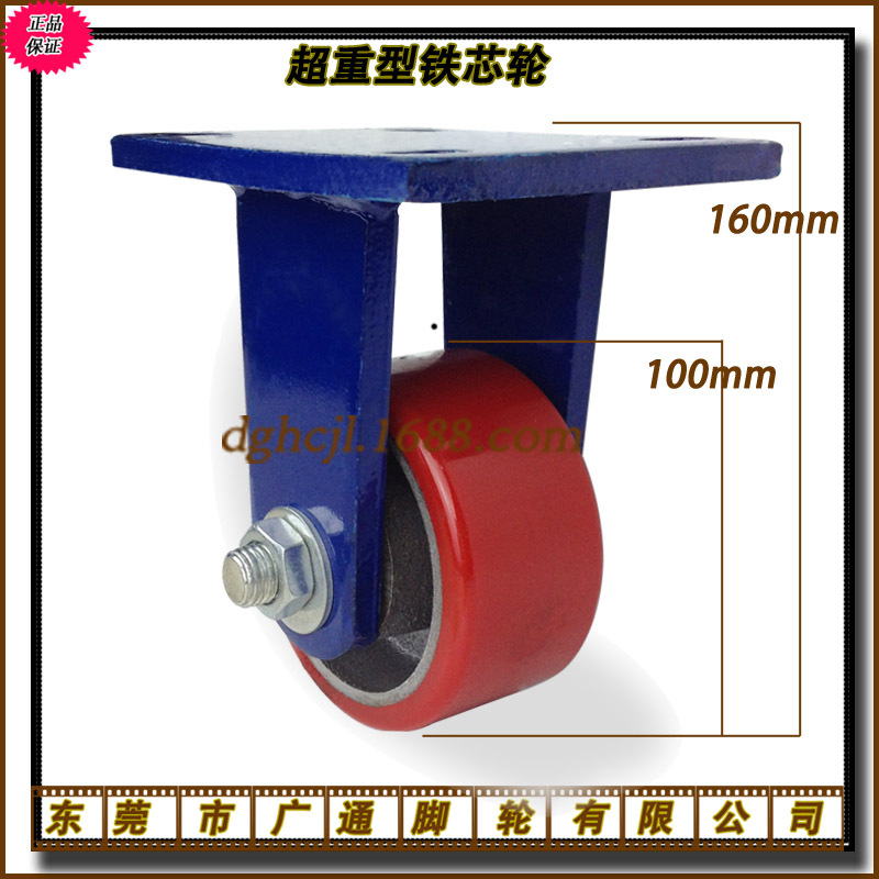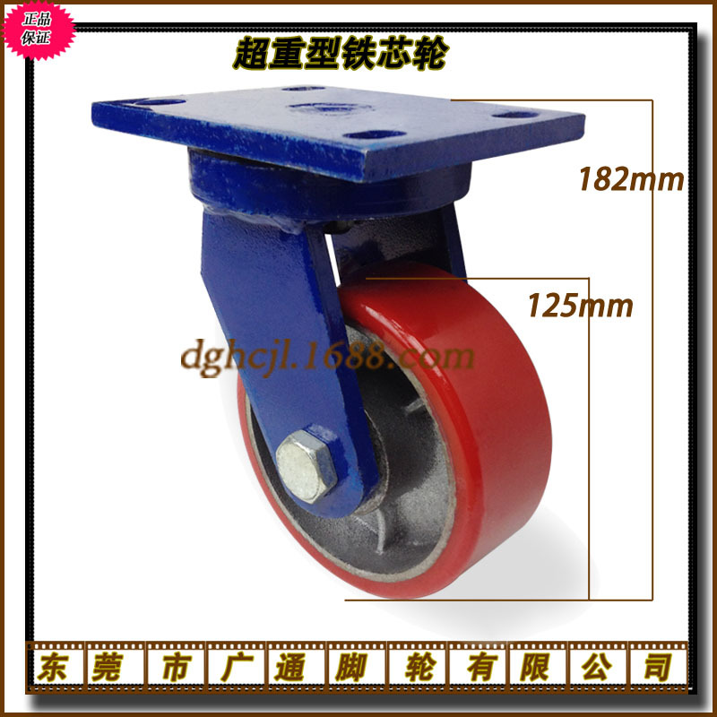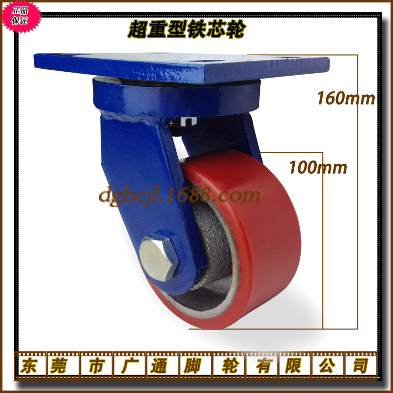 広通4インチ超重鉄芯ポリウレタン自在キャスターガントリー機械バスケット厚さ底板押し車輪