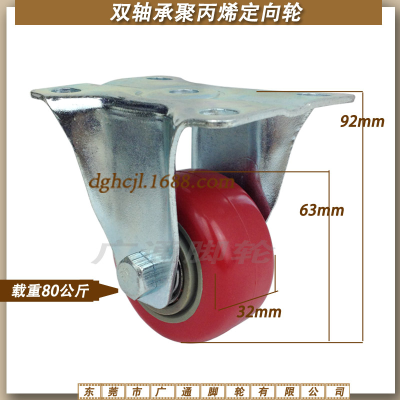 2.5インチ朱色ダブルベアリングpp固定キャスター倉庫手押し車機械設備工業ローラー