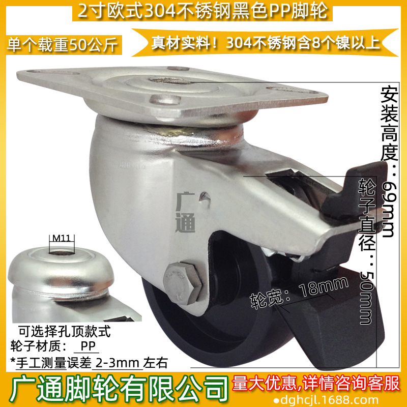 2インチユニバーサルブレーキステンレスppキャスター水産防水防錆ステアリング設備カート耐摩耗ローラー