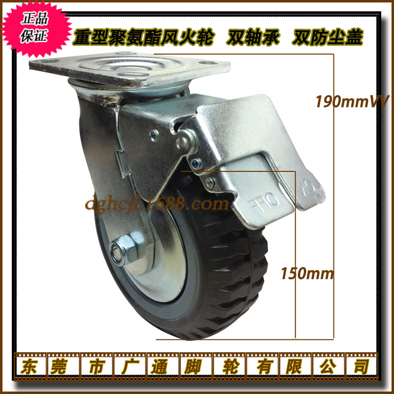 6インチ大型自在ブレーキポリウレタンキャスター産業機械風火ローラートロリーダブルベアリングpuローラー