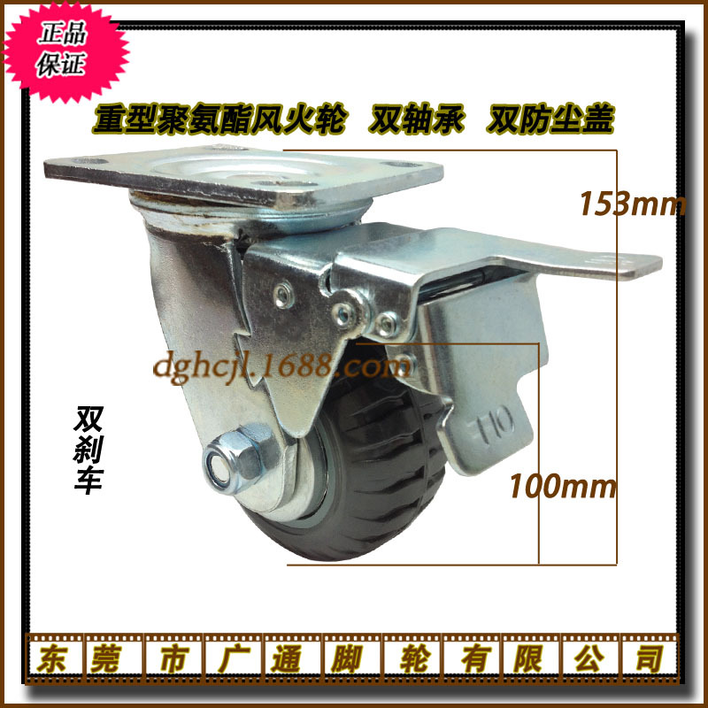 4インチ重灰風火ポリウレタンブレーキユニバーサル産業機械ダブルベアリングキャスター巻き止めpuローラー
