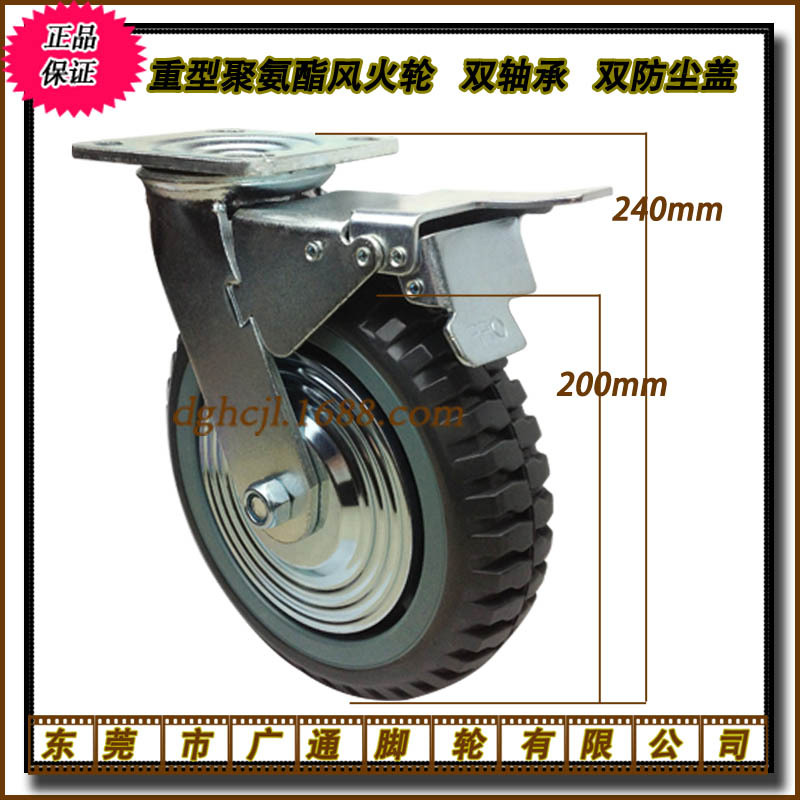 8インチ重灰風火自在ブレーキキャスター工業ポリウレタン車輪ダストカバー付きpu耐摩耗車輪