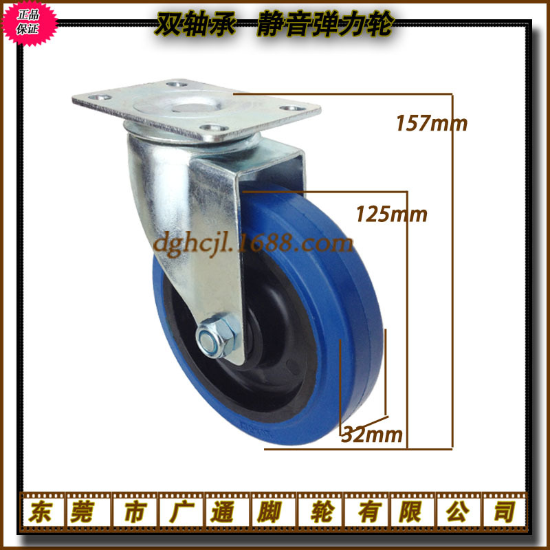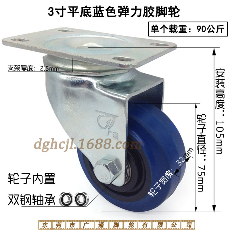 3インチブルー弾性ゴム自在キャスター工業手押し車静音ローラーホテル食堂車ゴム車輪