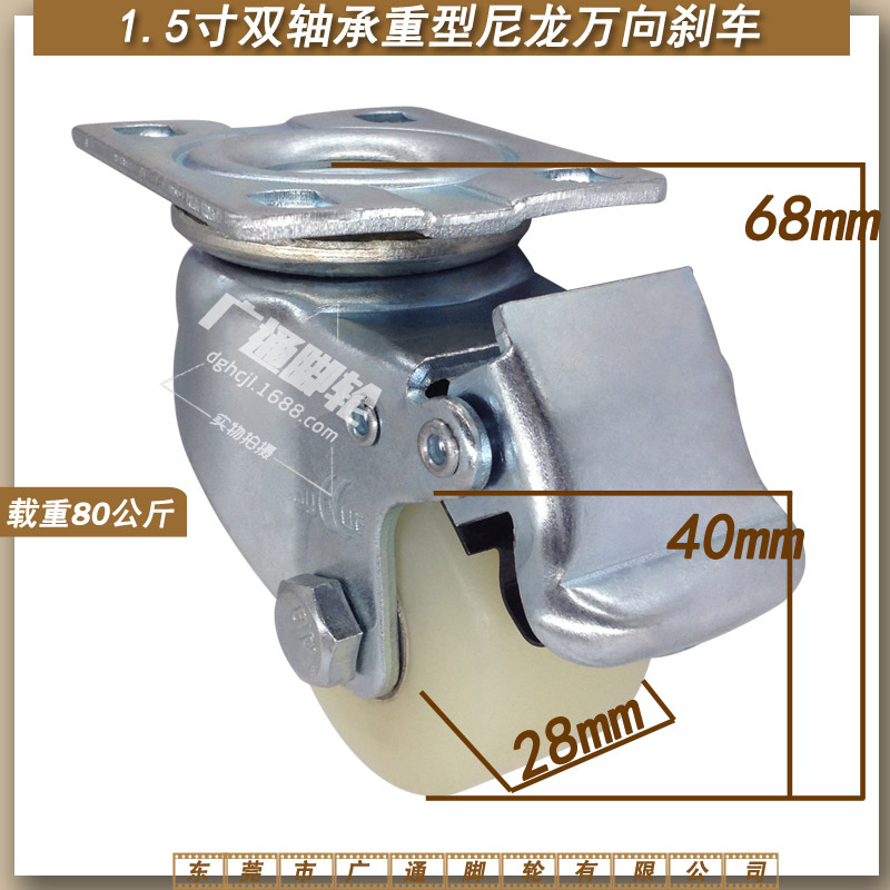 1.5インチユニバーサルブレーキナイロンキャスター産業機械耐摩耗性トロリーローラーテーブルダブルベアリングプーリー