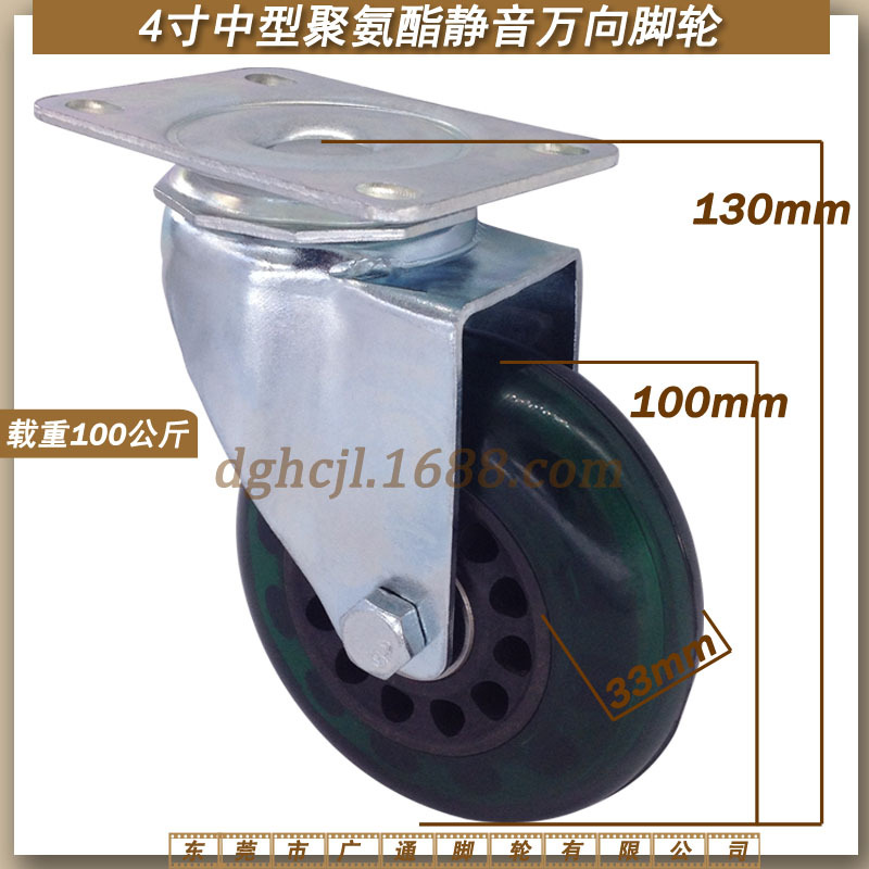 4インチ中型ユニバーサル透明グリーンポリウレタンキャスター家庭用家具ステアリングpu耐摩耗ローラー手押し車輪