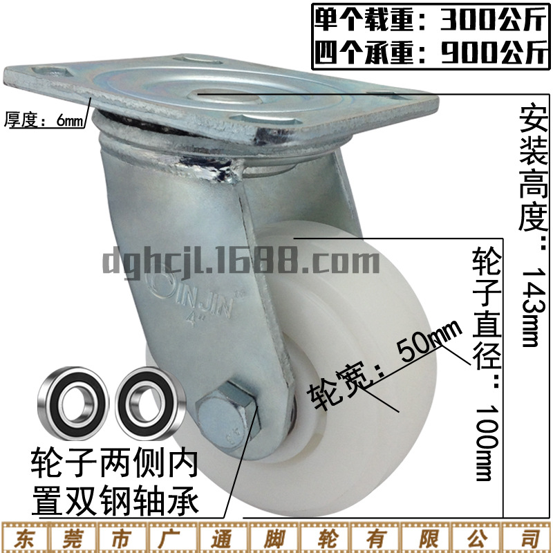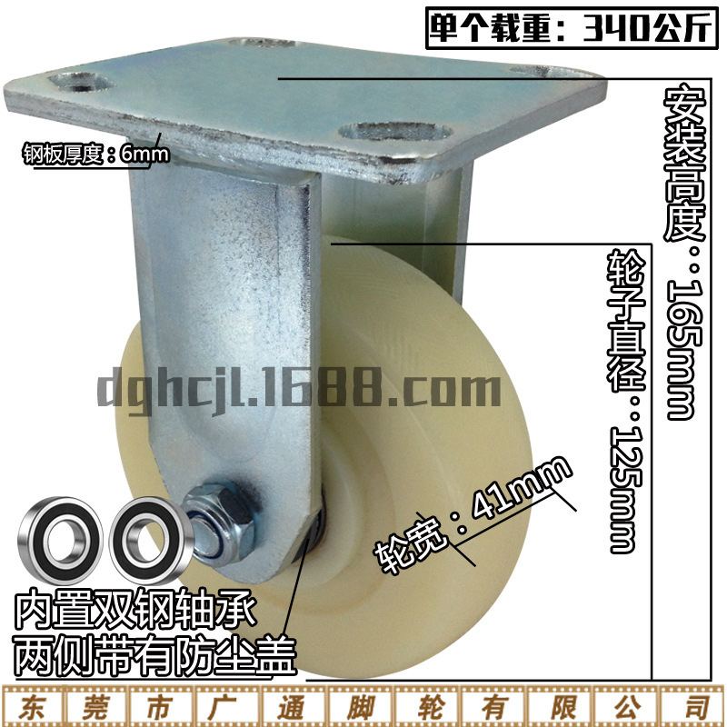 5インチinジン重方向性ナイロンキャスター産業機械直向耐摩耗ローラートロリーダブルベアリングホイール