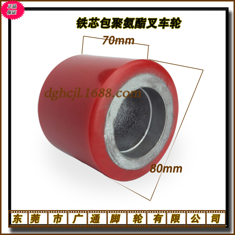 80x70鉄芯ポリウレタン手動フォークリフトキャスター油圧車の大型ローラー機械puローラーを供給します。