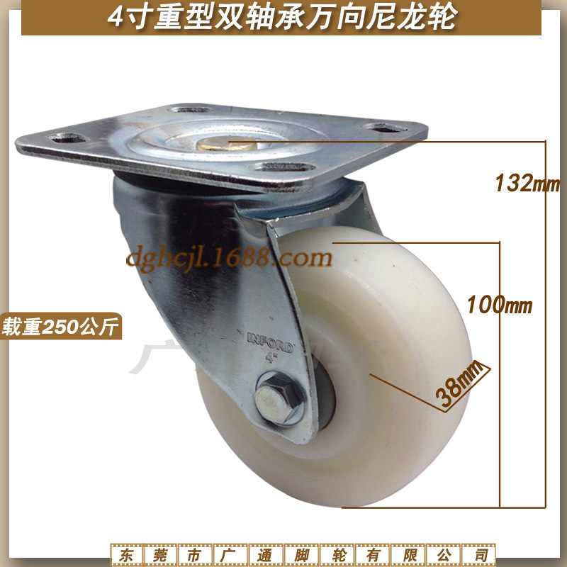 4インチ中型大型自在キャスター産業機械ステアリングナイロンローラーケースワゴン耐摩耗ダブルベアリングローラー