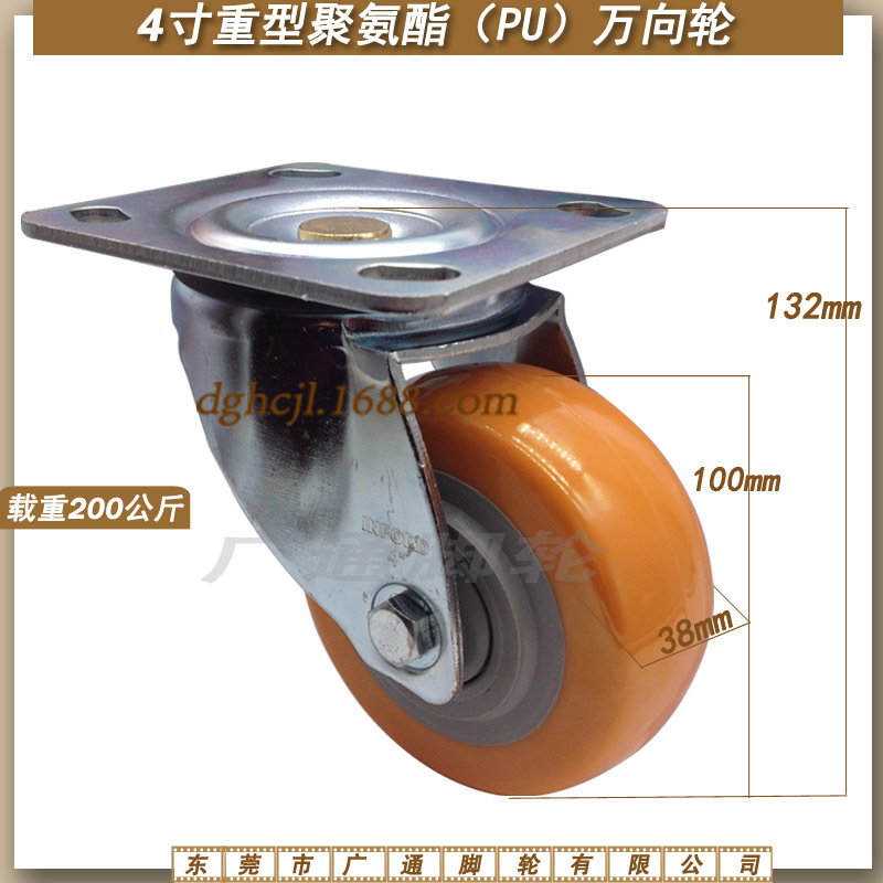 4インチ中型大型万能ポリウレタンキャスター産業機械設備ワゴンpuローラーケースステアリング耐摩耗ホイール