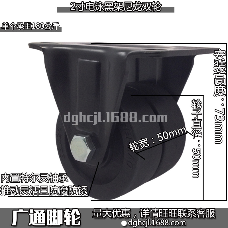 2インチ自在黒色ナイロン二輪工業低重心耐摩耗性転向ローラーテル霊機械プーリー
