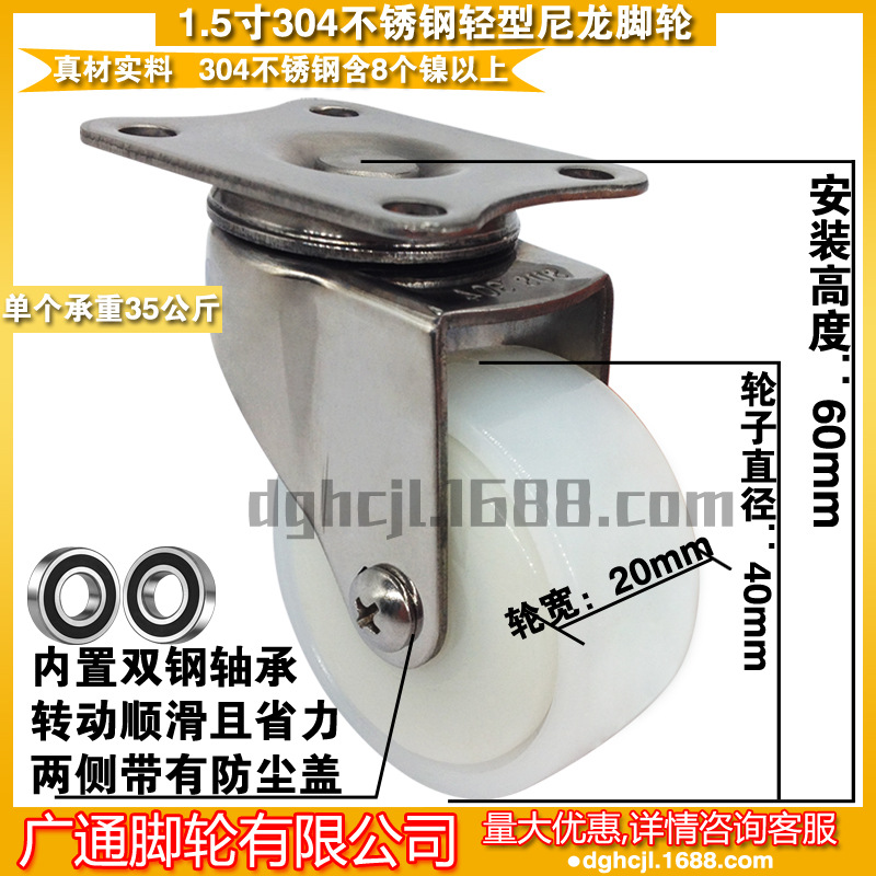 1.5インチ304ステンレス鋼ユニバーサルppキャスター水産防錆ステアリング耐摩耗性ローラー機械防水ホイール