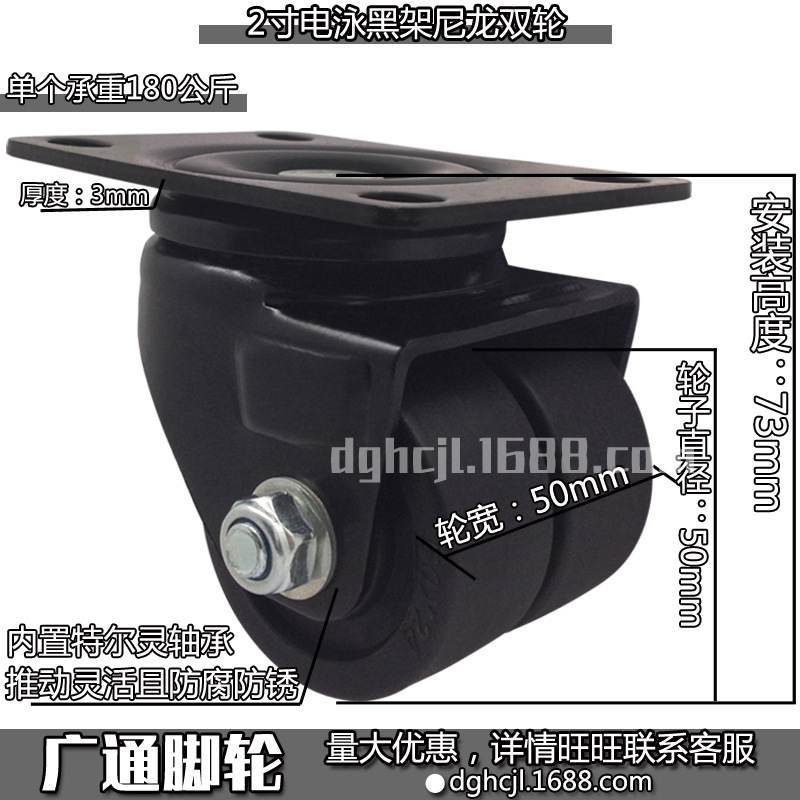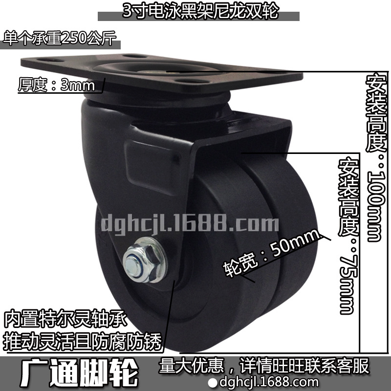 3インチ自在黒色ナイロン二輪工業低重心耐摩耗性転向ローラーテル霊機械プーリー