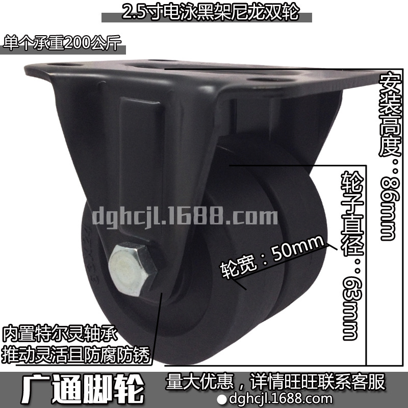 2.5インチ自在黒色ナイロン二輪工業低重心耐摩耗性転向ローラーテル霊機械プーリー