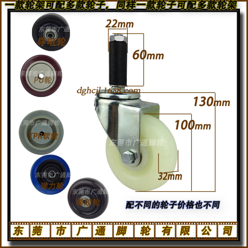 4インチ膨張棒挿入棒万能ナイロンキャスターホテル食堂車ゲイン管ダブルベアリング耐摩耗性ステアリングプーリー