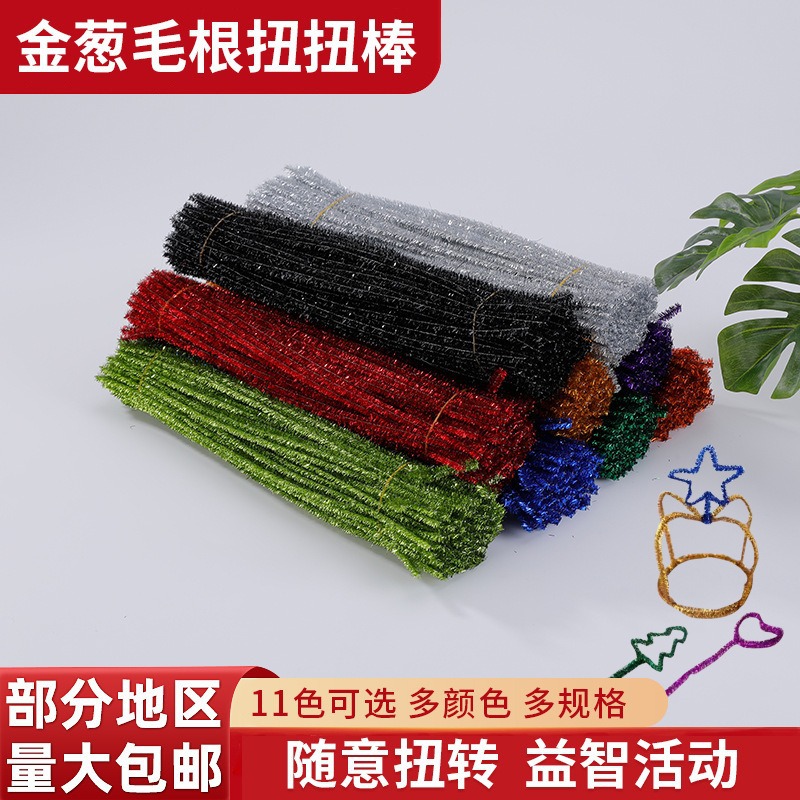 キラキラ毛根ツイストスティック幼稚園教育学校クラブ高齢者グループ活動手作りカラフルなツイストスティック