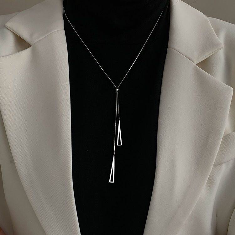 三角形のフリンジペンダントのネックレスの女性の軽豪華な小衆の毛の服のチェーンの長いタイプの2023年の新型の鎖のチェーンのアクセサリー