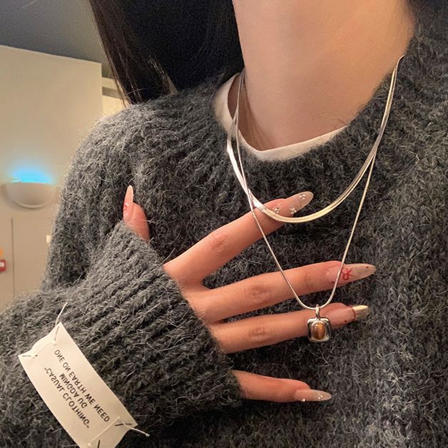 美ラード二重虎眼石ネックレス女性高級デザイン感小衆百合蛇骨鎖甘いクール首鎖鎖鎖鎖