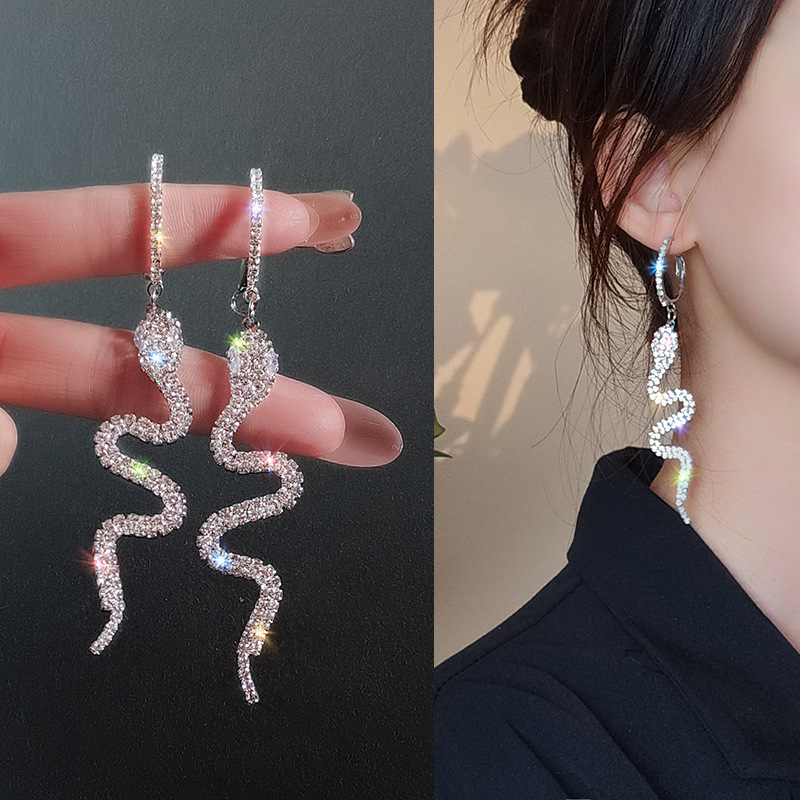 ダイヤモンドの長いタイプの蛇の形のイヤリングを入れます。