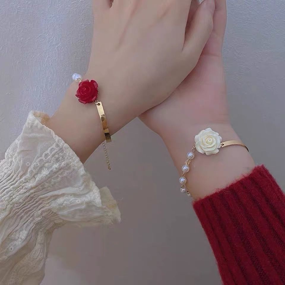 フランスの赤いバラと白いバラの真珠の親友のブレスレットの女性の気質の小さい大衆の設計の高級感の蝶結びの装飾
