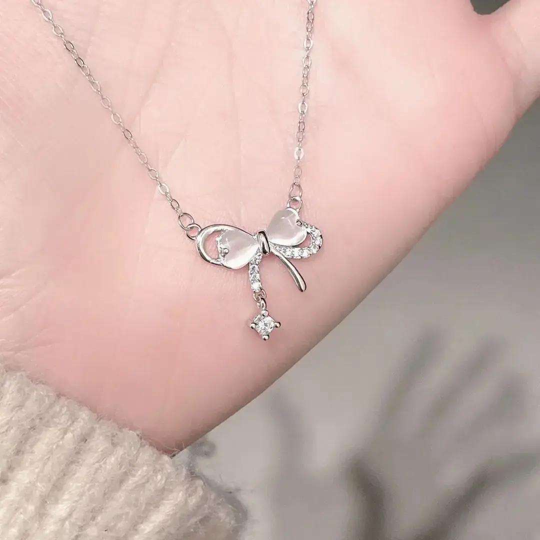 猫の目の石の蝶結びのネックレスの女性のins風の軽い豪華な大衆の設計の高級感の超仙の甘い少女の鎖
