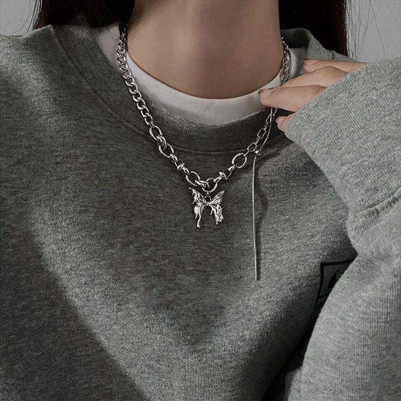 2023年の新型チェーンは蝶のペンダントのネックレスの女性の夏の大衆の設計の高級感の個性のヒップホップの鎖骨をつなぎ合わせます。