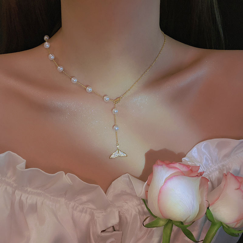 2023年新作魚尾真珠ネックレス女性夏非対称鎖骨鎖ins冷淡風仙気アクセサリー首鎖