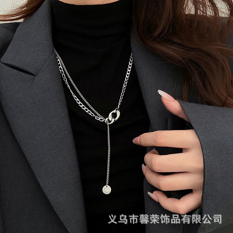 秋冬の銀色の丸いブランドのペンダントのネックレスの女性insの冷たい風の長いタイプの百合のセーターのチェーンのヒップホップのファッションのクールなアクセサリー