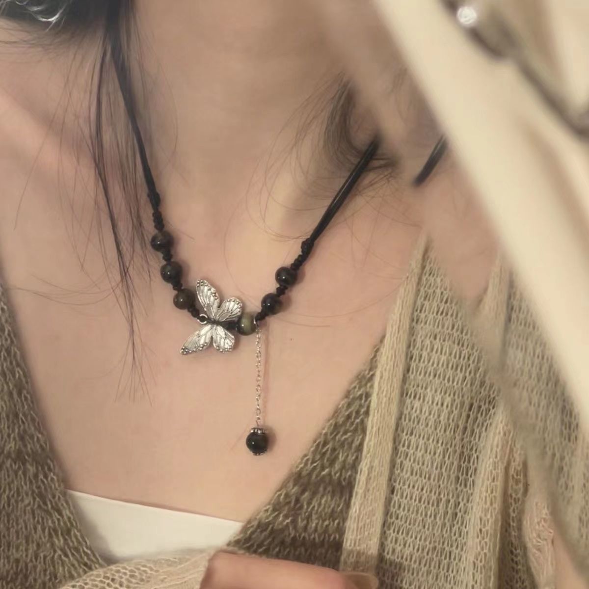 新中国式レトロ数珠蝶ネックレス2023年新型中国風高級軽豪華小衆設計鎖骨鎖